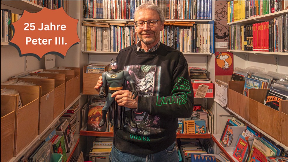 Den Comic- und Romanshop gibt es schon seit August 1972. Meine beiden Vorbesitzer hießen auch Peter. Deshalb bin ich – gemäß der Devise „aller guten Dinge sind drei“ – Peter III.